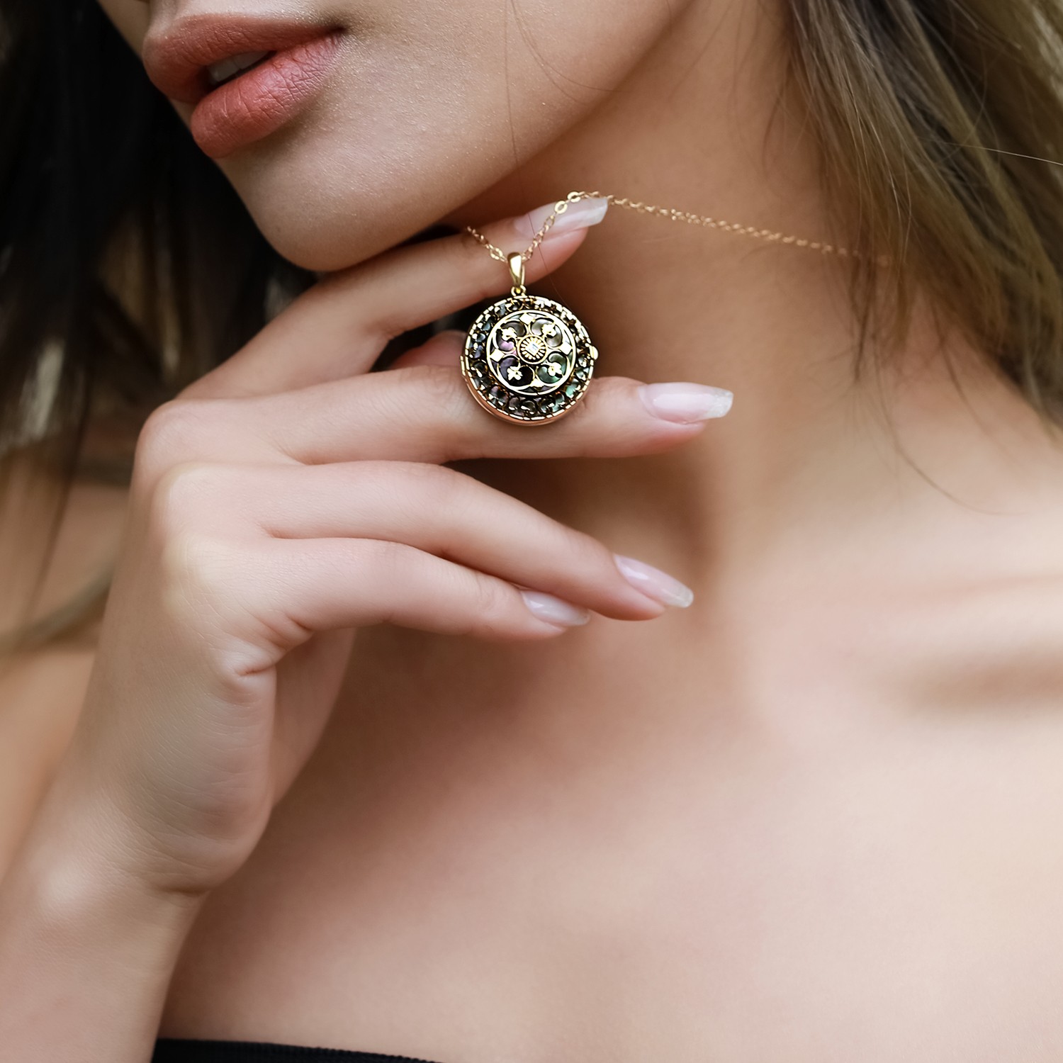 18K Gold Emerald Filigree Pendant Necklace
