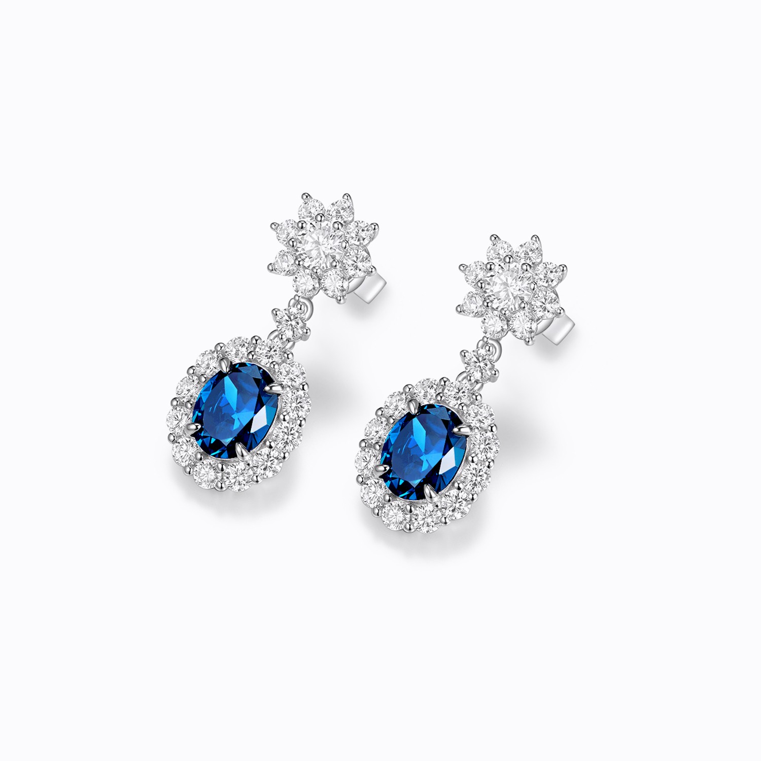 Exquisite Sapphire Earrings with an Inherent Elegant and Noble Demeanor. These high-end jewelry pieces are handcrafted with classic design elements, featuring a moderate length that complements gowns or dresses with an intelligent elegance, symbolizing refined taste.