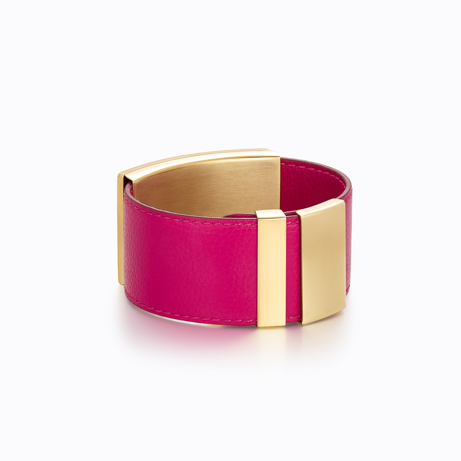 Unleash your bold side with our Vibrant Enamel Floral Leather Cuff Bracelet. This eye-catching accessory features a stunning enamel plaque with a rich, colorful floral design that pops against the vibrant pink leather strap. The gold-framed enamel and secure buckle closure add a touch of luxury and practicality, making it a standout piece for both casual and formal occasions. Embrace style and comfort with this uniquely designed bracelet, perfect for those who love to make a statement with their accessories.